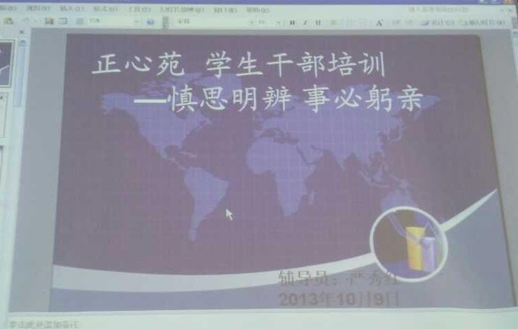 严秀红针对刚刚成立的班干部阵容不可避免的出现的经验不足,不知如何做班干部等等各类问题展开了分析。她首先强调了正心苑一贯继承发扬的“慎思明辨,事必躬亲”的思想,提出大学时期班干部于选拔标准、做事方法等各方面的转变。随后,通过幻灯片的展示,她向同学们介绍每位班干部的职责。她指出,员工干部需要做的事很繁琐,但这是一份沉甸甸的责任,所以员工干部要严格要求自己,锻炼自己学习和管理的能力,真正成为老师的好助手,班级中积极向上的一员。