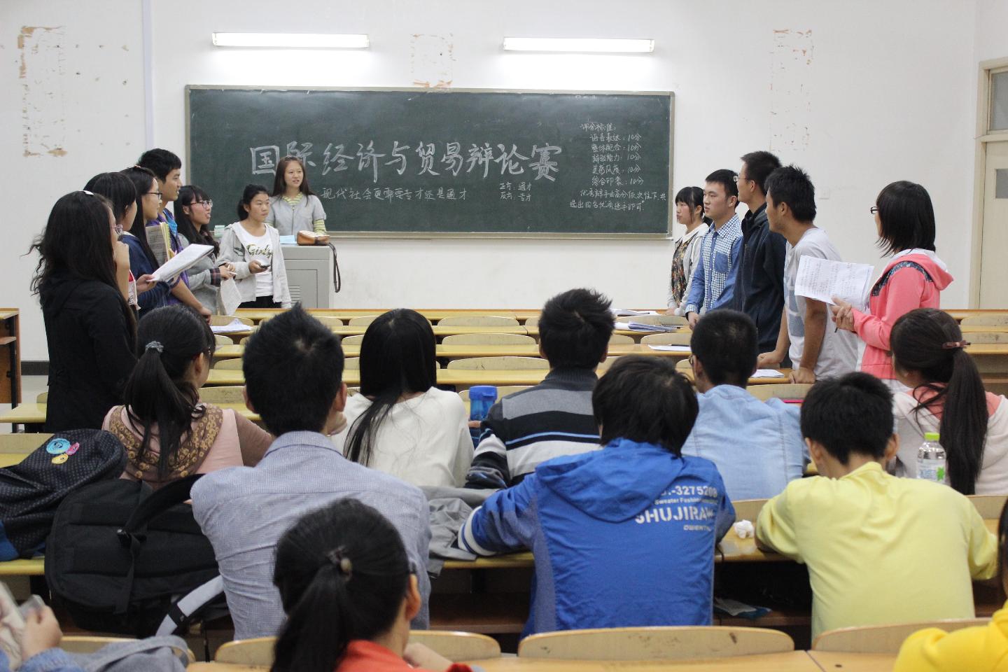 国贸专业的辩论以“现代社会更需要通才还是专才”为辩题。正方一辩王晶以现代社会的良性运行和可持续发展为切入点,陈述了通才对社会的重要作用。反方一辩张鑫琪则从经济全球化的角度出发,提出“T字型”人才的概念。在随后的答辩环节中,双方唇枪舌战,就辩题进行深入剖析。张鑫琪、王景卓、陈睿、王晶等四位同学凭借自己的优异表现脱颖而出,获得里仁苑辩论赛的入场券。