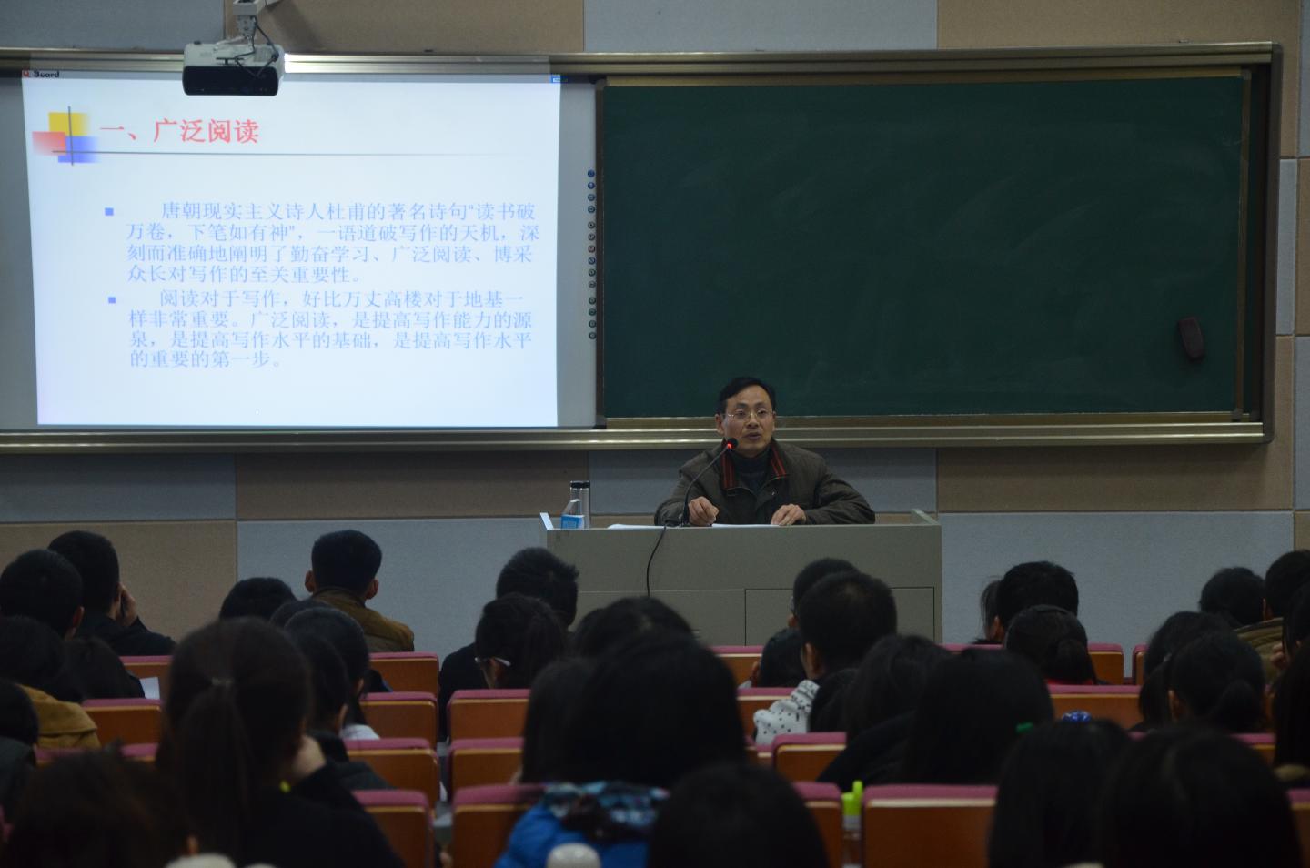 在此次讲座中,李本义主要从广泛阅读、把握要领、多写多练、掌握基本方法四个方面来进行了指导。