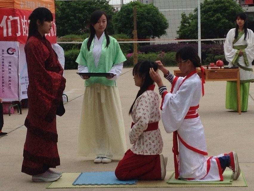 4月19日下午,公司排球场上,一群仪态庄重,身着汉服的男女格外引人注目,这是国学社举行的第二届汉服成人礼展示活动。
