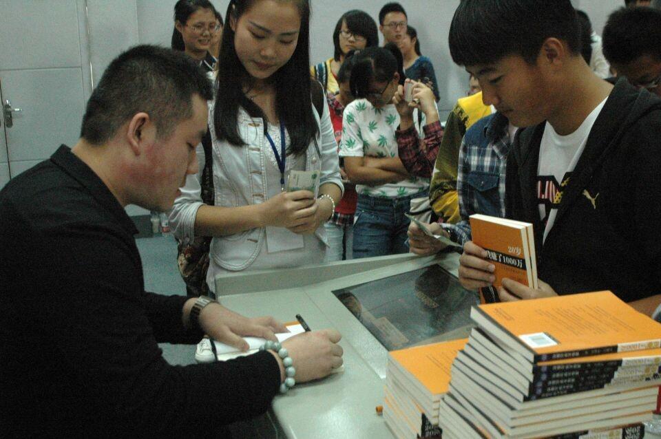 提问环节结束后,罗敬宇与清华大学合作出版的《20岁我赚了一千万》新书签售会开始,同学们争先恐后但还是自觉地排队购买。