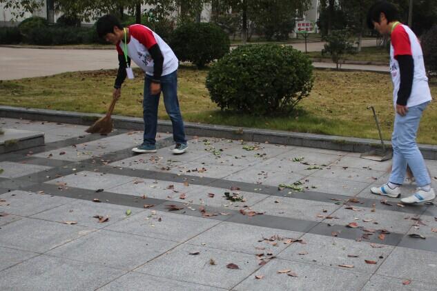 志愿者们都有备而来:统一的志协会服,热血的志协大旗…让人感受到这个集体的凝聚力、战斗力。活动还没开始,成员们都已跃跃欲试,有贴心准备好箕畚扫把等劳动工具的,有自觉拉起志协标语与大旗的,有已经开始用手拾起片片落叶的……7点整一到,大家便紧锣密鼓地活动开来。其间不时有翼扬和扬宝主席的逗趣对话,引起了志愿者们的阵阵笑声。开心的同时大家也丝毫没有懈怠,一堆堆的枯叶被聚齐,装袋,运走……脸上洋溢的笑容让人感受到同学们做志愿服务的热情。
