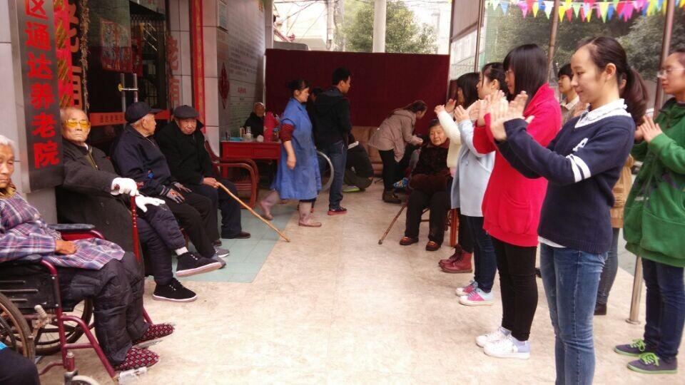 当同学们提着一袋袋水果出现在养老院门口时,受到了养老院经理的热烈欢迎,同学们也热情的上前与爷爷奶奶们打招呼。随后,予爱手语协会的成员们为他们表演了事先准备好的节目。手语协会的会歌结合灵活的舞姿给老人们带来了别样的视听享受;歌曲《隐形的翅膀》,《让我们荡起双桨》令老人们陶醉其中;而最后李一露同学为老人们表演了一段戏曲《刘大哥讲话理太偏》,赢得了老人们阵阵热烈的掌声。