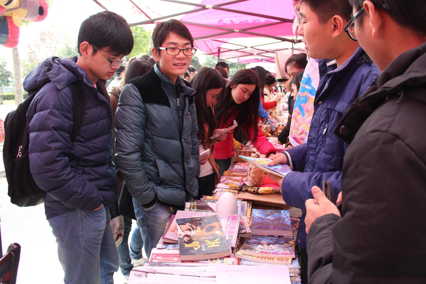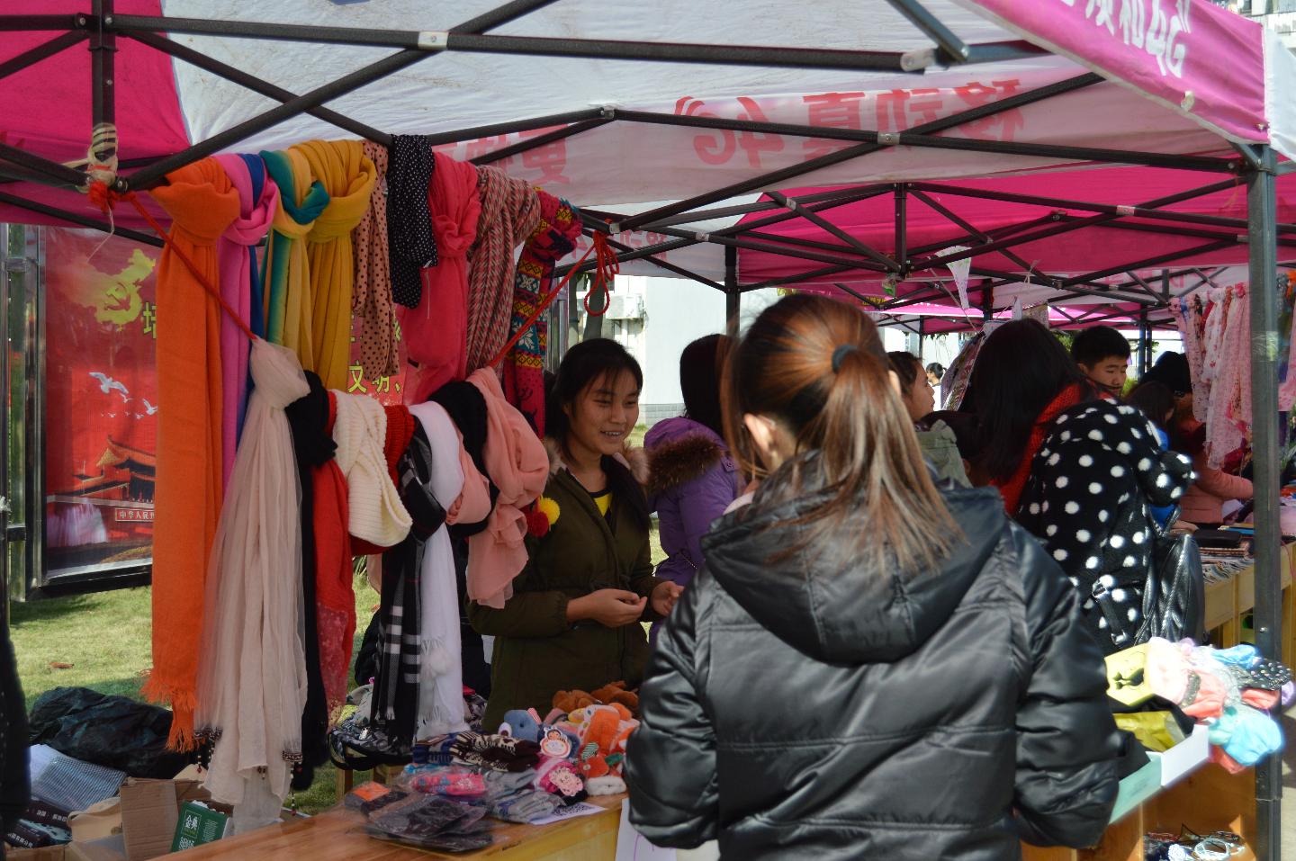 “这个便宜一点嘛……”“这个打个折好吧……”此类讨价还价声此起彼伏。他们从这个摊逛到那个摊,间或买点什么,或者干脆只看看。摊位上,摊主时不时与同学为价格而争辩,互不相让;有的摊主为提高销售量,想出各种方法吸引顾客,如:团购就打折、买一送一、送货上门等等;又有的摊主之间相互照顾,你买我的商品,我买你的商品等等。现场呈现出热闹的氛围。