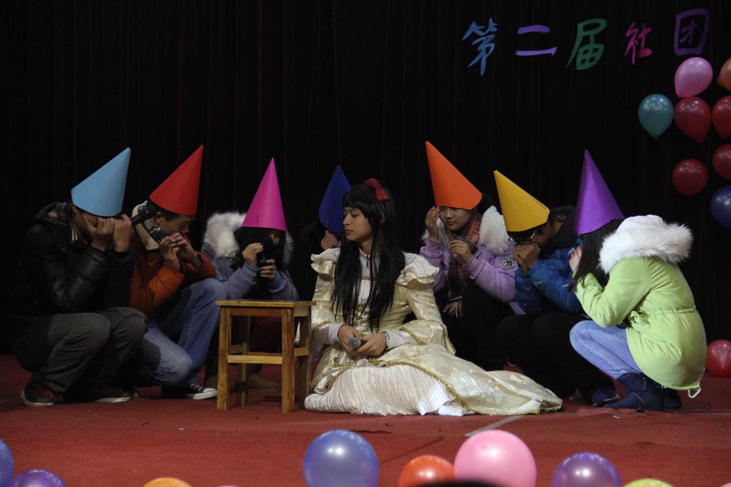 在社团文化月中引起同学热议的《白雪公主与猎人》英语话剧 在闭幕式晚会上再度上演,SOMA英语话剧团采取了部分演员反转表演的方式,而当王子以“QQ"为联系方式,王后谈论起“网上约会”,白雪公主用起了“mobile phone”,众多现代元素的加入引得现场观众笑声连连。紧接着,魔术协会的《魔盗三重奏》将现场气氛带到高潮,矿泉水从杯子里不翼而飞的疑问尚未解决,魔术协会又为观众展现了人与纸牌之间的莫名感应,一次抽牌偶然抽到的红桃6,竟然出现在此后每一次的随机抽牌中,而且这样的“感应”居然在两人手指相对五秒中后即可传递,不断出现的红桃6让众人大呼神奇。随后展示的预言魔术更是让现场观众百思不得其解,看似随意的抽牌竟然准确无误的印证了事先写在纸上的五个预言,当团委书记邓超的手机号被准确预言时,现场更是爆发一阵欢呼。