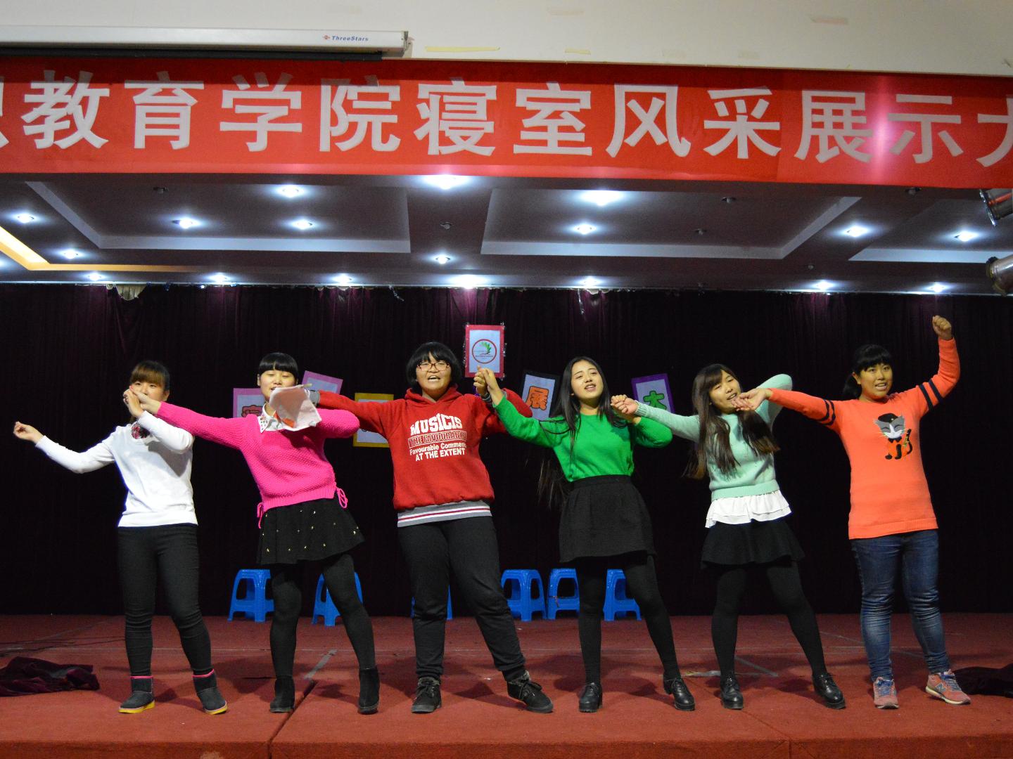 “唐僧,悟空再度西游,琵琶精不再想吃唐僧肉,而是将柔情深深的种在了悟空身上……”这就是由2-532寝室表演的节目《西游再演绎》。剧中他们不仅融入了英语,韩语等新鲜词汇,还将紧贴我们校园生活的员工卡、热水卡等物品运用到了剧中。让现场的观众捧腹大笑。还有2-325寝室六位“女神”将盆子,水桶,扫把等日常用品当做道具,结合劲爆火热的现代舞曲,为大家奉上了一场《小时代,大扫除》。现场的观众也随着她们的节拍摇起了荧光棒,为他们点赞。