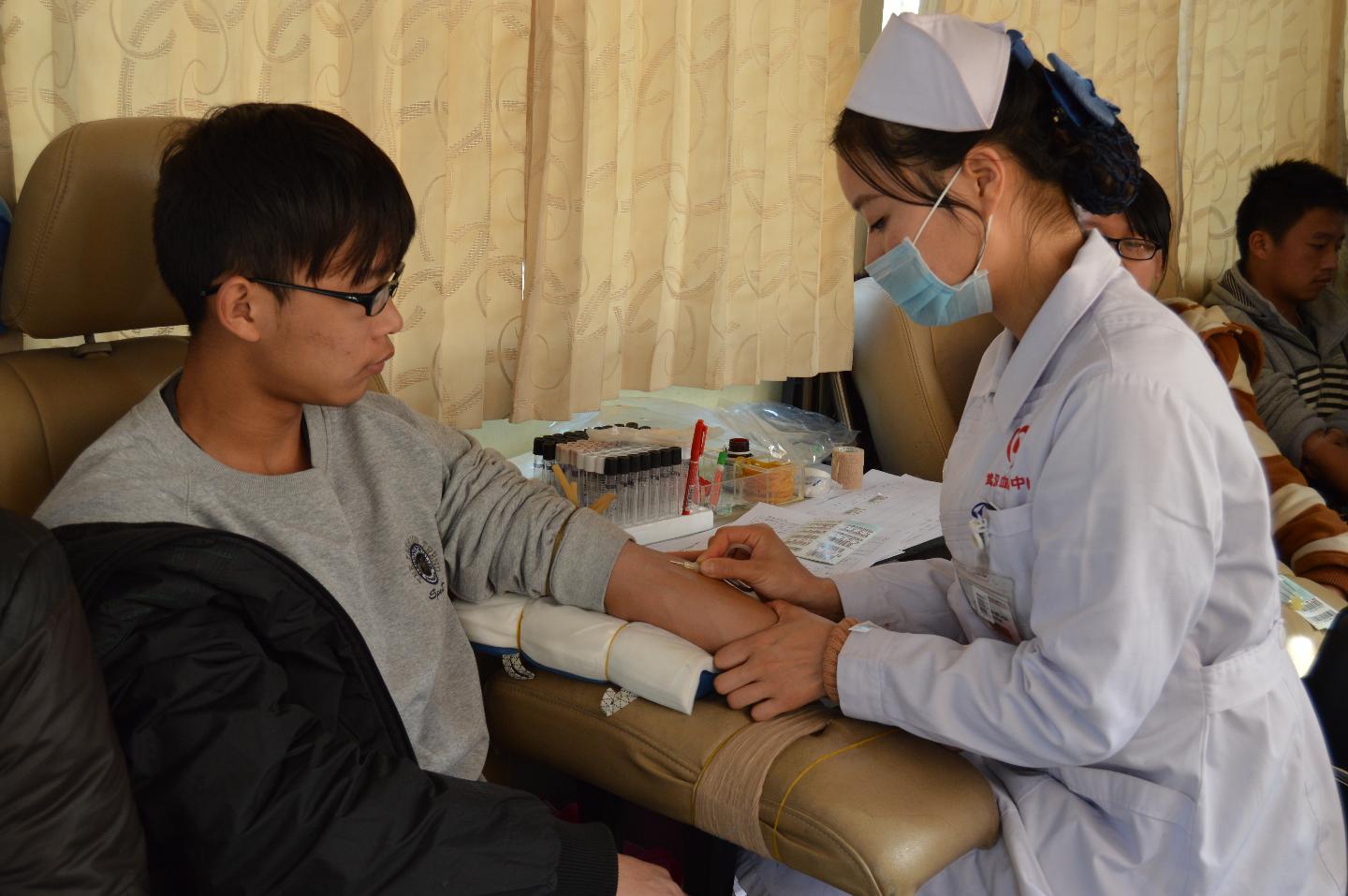 在众多的献血的人中,我们发现了一位同学,面对输血管,他毫不紧张,反而手握海绵球坦然地一压一松,似乎已经很熟练了。经过一番询问才得知,虽然他才大一,但这已经是他第二次献血了。他在高考一考完就和同学们去了献血中心,献了三百毫升。这不刚过六个月,他又来了。“第一次献血时,是和几个好哥们一起去的。那时候说实话,我还是有点紧张,不过献过血后我觉得好像对我没什么大碍,于是刚好过了六个月我就决定再来献了一次血”他笑着对我们说道。面对社会上一些对献血和用血的疑问,他也表达了他的看法。他说“献血是个人的事,每个人都有自己的看法,我们献血献出的是自己的爱心,不用去理会其他人的评论,就算社会上的批判声音再多,我还是会坚持献血的。”