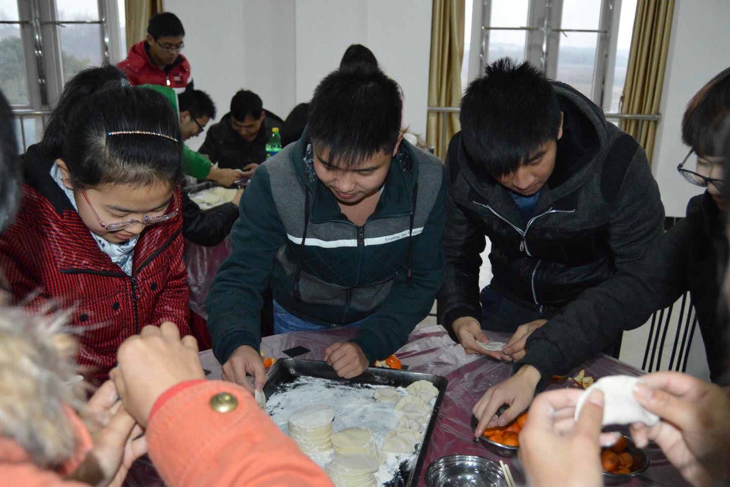 “包饺子对我们南方人来说实在太难了!”该班员工李习圆叹道。确实如此,在包饺子过程中,不少同学忙的一塌糊涂,馅放多了,不能封口,馅加少了,又不饱满。包出来的饺子更是奇形怪状,涌现出一批“太阳花”,“小笼包”……乐的同学们哈哈大笑。