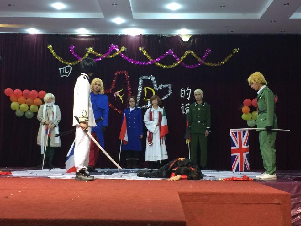 随后,晚会迎来游戏环节,八名观众分为四组,就各类型动漫问题进行抢答,考量选手的同时也带领现场观众重温了《数码宝贝》,《机器猫》,《银魂》等经典动漫。紧接着,FD动漫社改编自动漫《黑塔利亚》的舞台剧《为龙》将晚会气氛带到最高潮,《为龙》以二战时期为背景,将列强拟人化,讲述了原本叱咤风云的中国,因固步自封受尽列强欺凌,在连失香港台湾后,奋发图强,终收复失地,君临天下的故事。“列强”们个性鲜明,服装也极具各国特点,代表中国的王曜一身戎装,一出场便引来如潮掌声,最后的斗争阶段更是挥舞大旗虎虎生风,引得台下尖叫不断。