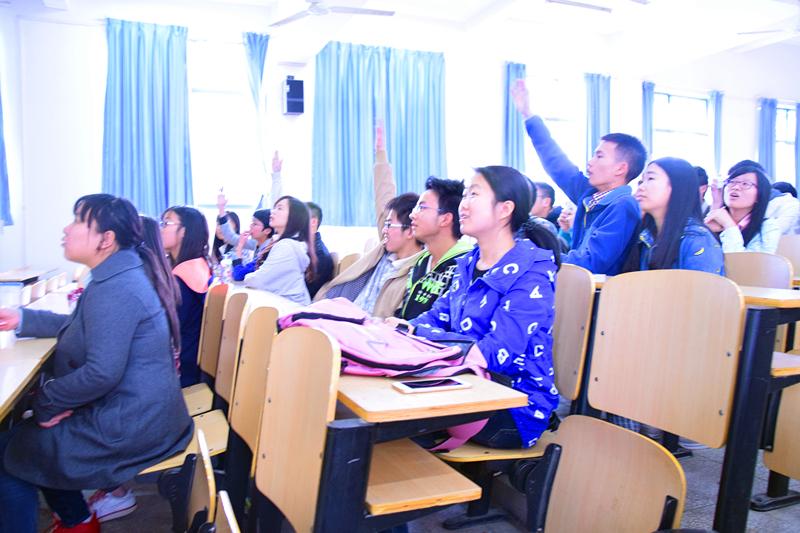 据了解,团日活动分为记忆照片展,知识抢答赛,全班撕名牌三个步骤,以此来回忆同学之间半年多建立的友谊。在播放照片时,从初入校园的第一印象,军训时的懵懂照,秋游时的欢乐照,同学间的搞怪照,还播放了元旦联谊的短视频,每一张照片都是在记录着班级一起走过的路。该班王琴同学看后感慨,“看着回忆照,错过秋游活动真是遗憾,不过很庆幸在阳逻的日子有大家陪伴,以后的故事会越来越多。”接下来的抢答环节,全班分为八个小组参与游戏。一声开始,几乎全班同学都站起来抢答,题目涉及体育,娱乐,历史,还有让大家肃穆对待的党建问题,不过这仍旧没能磨灭大家的积极性和热情度。惩罚环节把活动推向高潮,同学们笑声不断,掌声连连。