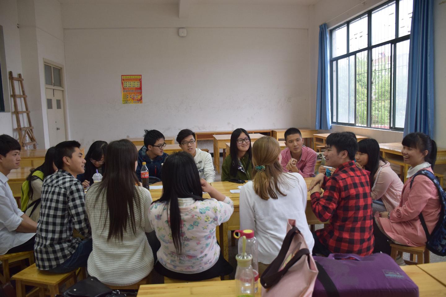 “I’m Kelly, I am from America.”“I am from TaiYuan……”“I am from HuBei……”参加英语角活动的老师及同学们在开场纷纷介绍自己。22日晚,现于WilliamHill体育任职的外籍教师Kelly在公司与约14名通识学子一起开展了由英语广播台主办的纯英文交流的英语角活动。
