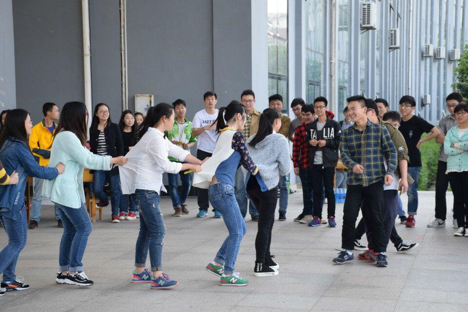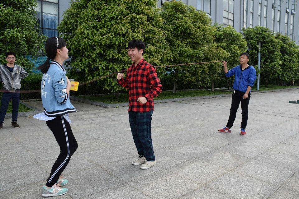 活动一开始,游戏“贪食蛇”就吸引了大批同学的目光。三人一组,五人一场,组最后一名贴有一张纸条,要是不幸被夺去,就得被淘汰。为了夺得胜利,男生和女生组都使出了浑身解数。联盟,围攻,偷袭……女生们的各种“诡计”逗得观众开怀大笑,而男生们的绅士礼让的风度也赢得了大家的掌声。
