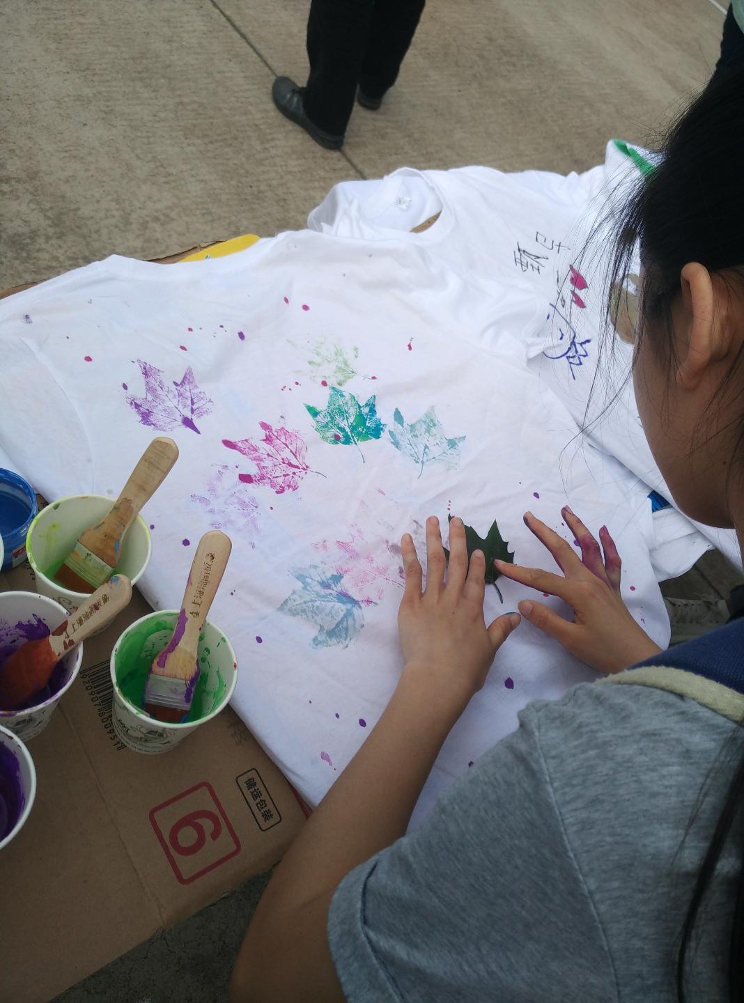 各习苑的员工也都乐在其中。思齐苑的员工一个个不知不觉都画花了脸,笑着互相涂抹着颜料。明俊苑的T恤创意设计吸引了不少人驻足,材料化学专业的代舒文画上了日前大热的宋仲基,她说到:“甄导和仲基欧巴一样帅!”另一位高分子材料专业的王纯借用了一旁地上的树叶,涂上各种颜色,清晰的叶脉纹路印在衣服上,艺术感十足。