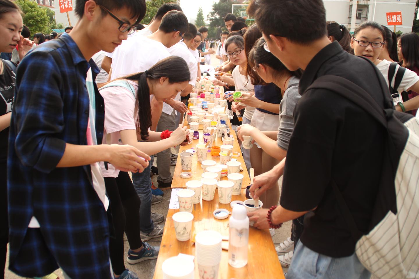 “大家需要颜料和画笔的自己到服务台领取啊!”下课铃声刚落,篮球场边已经围满人。5月17日晚五点,由WilliamHill体育创新创业俱乐部承办的“把你留在最美的通识里”手绘文化衫活动在篮球场拉开帷幕。各习苑员工都积极前往,为自己留下一份“通识记忆”。