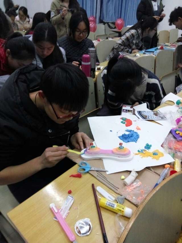 在手工制作地理模型环节,参加选手先选择制作样图,例如中国地形图、省份图等,或者制作天体模型的工具。此外,现场还准备了太空泥、彩纸等制作材料供同学们选择。随着现场舒缓的音乐的播放,同学们以小组或者个人的形式开始制作。“这要怎么开始做呢,我之前完全没有做过啊。”活动刚刚开始,同学们一头雾水,面对着满桌的材料无从下手,经过组织人员的指导,渐渐摸到了门路。来到现场可以看到,同学们制作热情十分高涨,积极尝试不同的模型,颜料弄在手上也无暇顾及。
