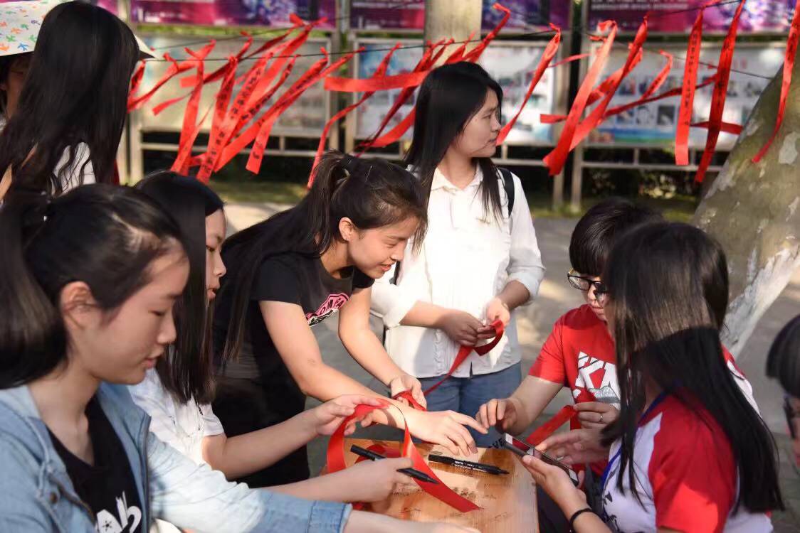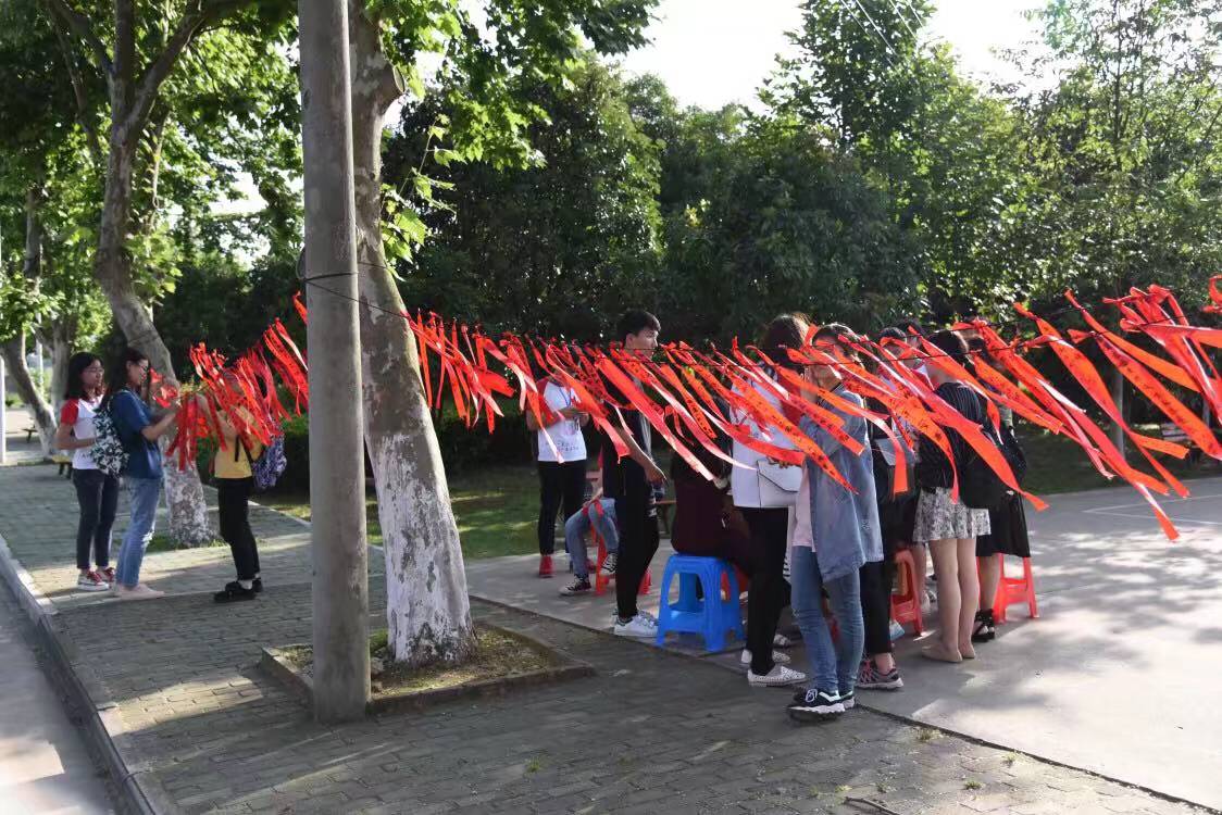 5月12日,WilliamHill体育志愿者协会在通识公司举办了一次母亲节挂红丝带送祝福的活动。中午11:00—12:00和下午17:00—18:00,在排球场和问津苑门口都有值班人员引导同学写祝福语,挂红丝带。