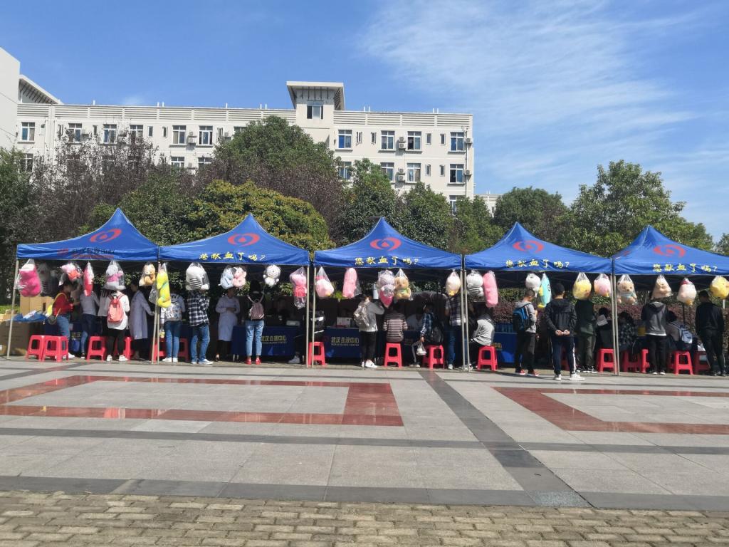 上午9点,问津食堂正门广场前两辆献血车停靠。广场边上还搭有一排临时棚,用于工作人员检查自愿献血的员工们的血液情况。下课后,员工们来到广场上踊跃参与献血活动。
