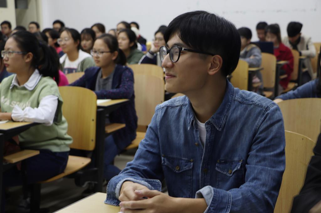 “《朗读者》的成功在于用最真挚的情感讲述最感人的故事”,18级管理科学与工程专业员工马创新主持开场时这样说到。随后,同学们献上《作为一个战士》《将进酒》《我爱这土地》等作品,配合手势以及走位和抑扬顿挫的语调,把自己心中对诗歌理解表现出来。其中《独立的意义》的表演者柯蓝茜说她英语口语并不是很好,但是想挑战自己,所以选择了英文诗歌并脱稿朗诵。她还结合诗歌与同学们交流了关于独立的看法,赢得了阵阵掌声。观众们此后还就《你是人间的四月天》是否是写爱情展开了讨论,大家各抒己见,把现场气氛推向了高潮。