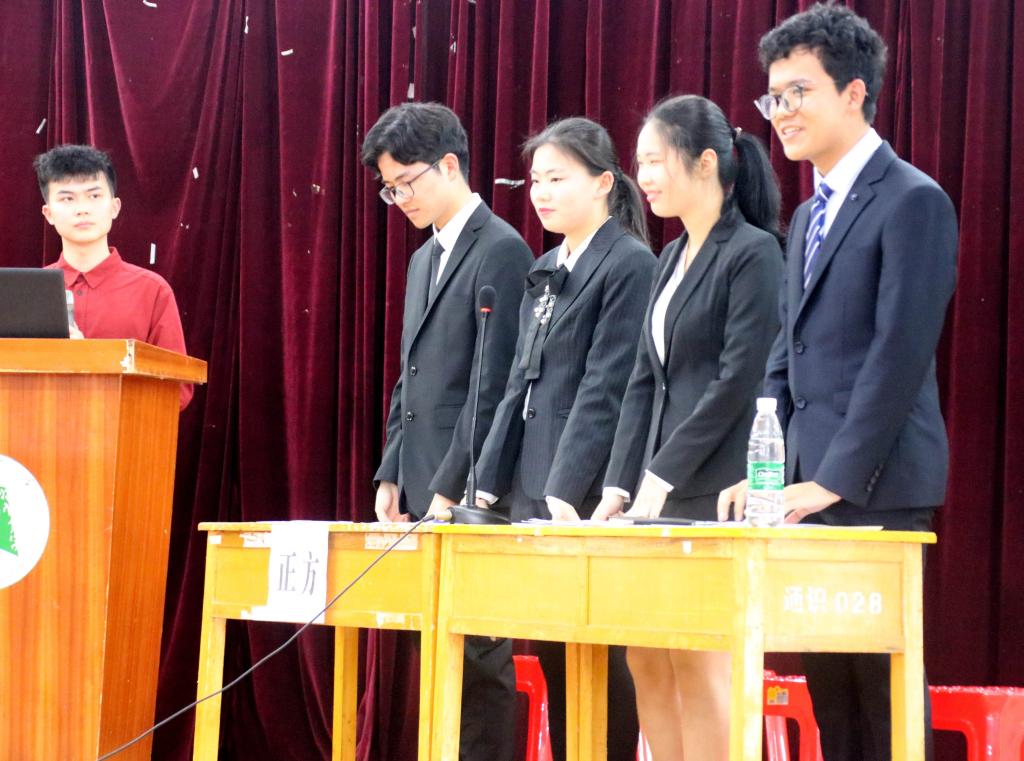 比赛最后的自由辩论环节,正反双方唇枪舌剑,步步紧逼,火药味十足,气氛尤为紧张激烈。在一串串精彩的追问与回答中,观众屏住呼吸,认真倾听每句陈述。当最后一秒结束,比赛在哨声中停止,反方崇善苑代表队以一票微弱优势胜出。