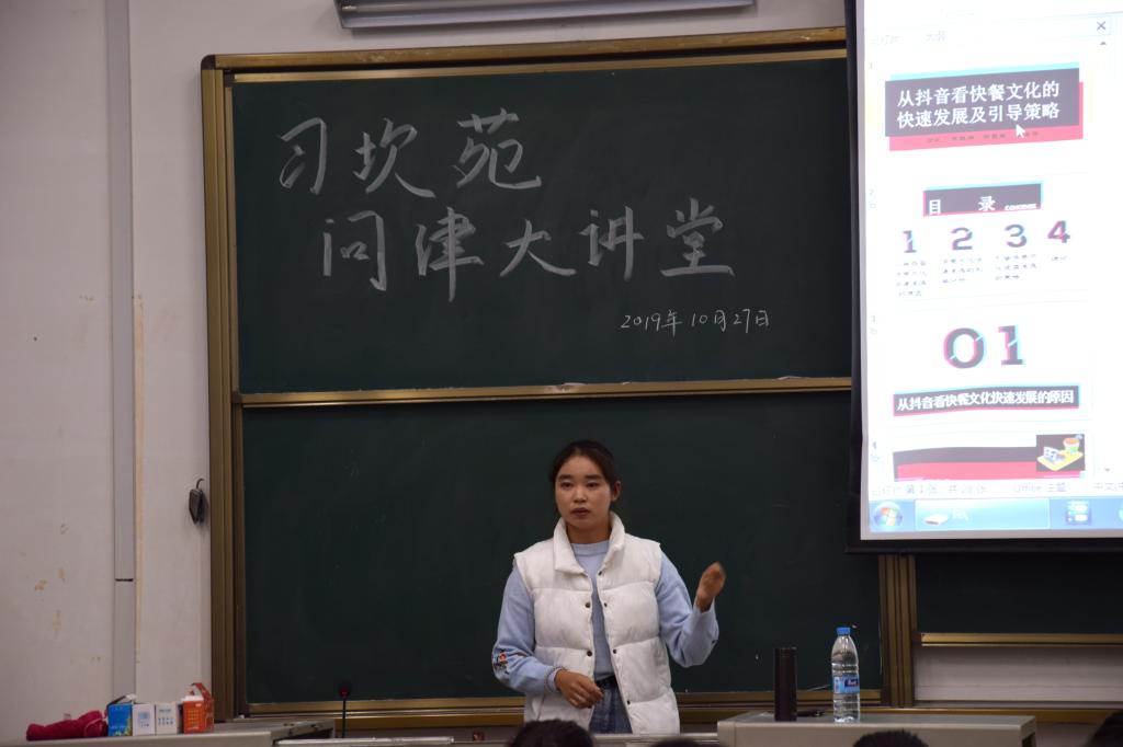 2018级国际经济与贸易专业的左中正以其风趣幽默的语言,深入浅出的讲解为2019级国际经济与贸易专业的员工们介绍了“问津大讲堂”的比赛流程和比赛规则,同时解答了员工们对于所选主题,演讲时长和背景音乐等方面的问题。“这是一件很有意义很锻炼能力的事情,希望大家都能够积极报名踊跃参与。”左中正说。宣讲结束后,2019级国际经济与贸易专业的杨曼艺同学说:“学长细致耐心,解答了我的很多疑惑,更加鼓舞了我报名参加的想法。”