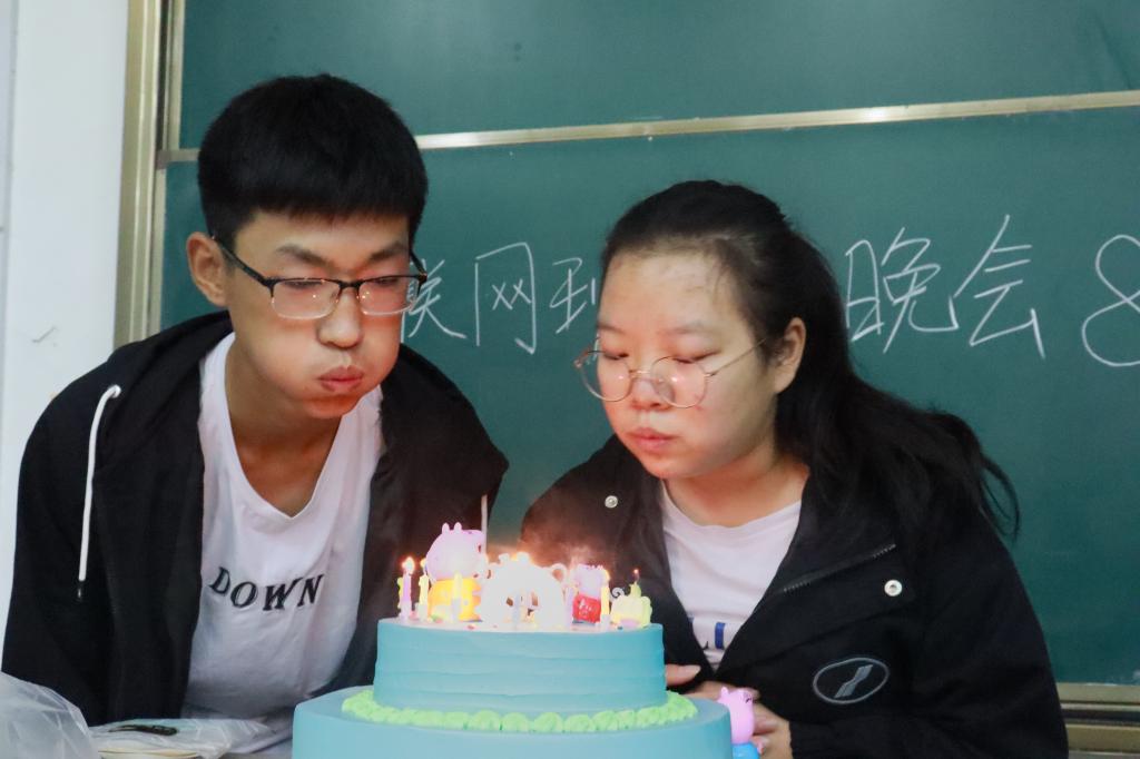11月2日晚,润德苑物联网班在B309教室举行班级生日会,并邀请到了立学苑、笃行苑等其他苑的员工前来参加,共同为十一月过生日的员工江怡嘉和田绍启送上祝福。