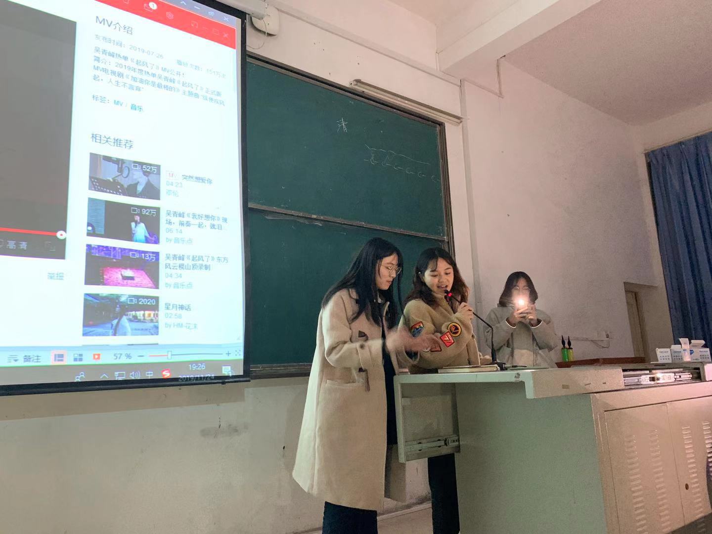 “猜歌名”游戏作为首发环节活跃了班会的氛围。班会主持人播放歌曲中的任意段落,由员工们进行抢答。《在心里从此永远有个你》《需要人陪》等风格多元的歌曲激起了员工们的参与热情,为他们提供了一展歌喉的机会。第二个游戏“歌词接龙”开始,老歌《狼爱上羊》点燃了热情,大家在黑暗中跟着唱了起来。网络上流行的《芒种》和《野狼disco》把气氛推向最高潮,无论是座位上的人还是抢答的人都直接高声唱起来。触发童年记忆的《梦的光点》和《QQ爱》更是引起阵阵欢呼。随后的“情景唱歌”环节,崇善苑的员工发挥想象力,纷纷上台为“回家后,发现爸妈居然搬家了”、“你家的猫对你说话了”、“一觉醒来发现辅导员在你面前”等场景配上了背景音乐,现场掌声不断。