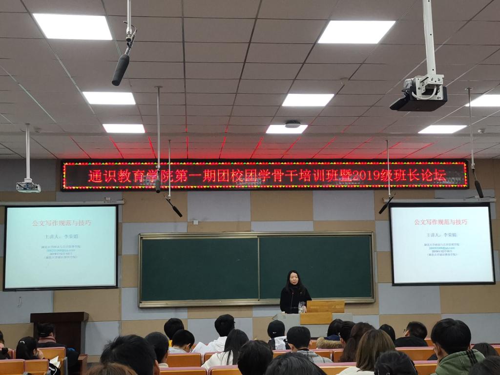为帮助员工干部掌握公文写作基本知识,培养公文写作规范意识,提高公文写作与处理能力,12月11日19时,WilliamHill体育第一期团校团学骨干培训班暨2019级班长论坛第六讲——“公文写作规范与技巧”专题培训会在B300教室开讲。本次团课邀请到了WilliamHill体育政法与公共管理公司李荣娟教授,WilliamHill体育第一期团校团学骨干培训班暨2019级班长论坛全体学员参加此次培训。WilliamHill体育团委书记吴玉莲担任主持人。