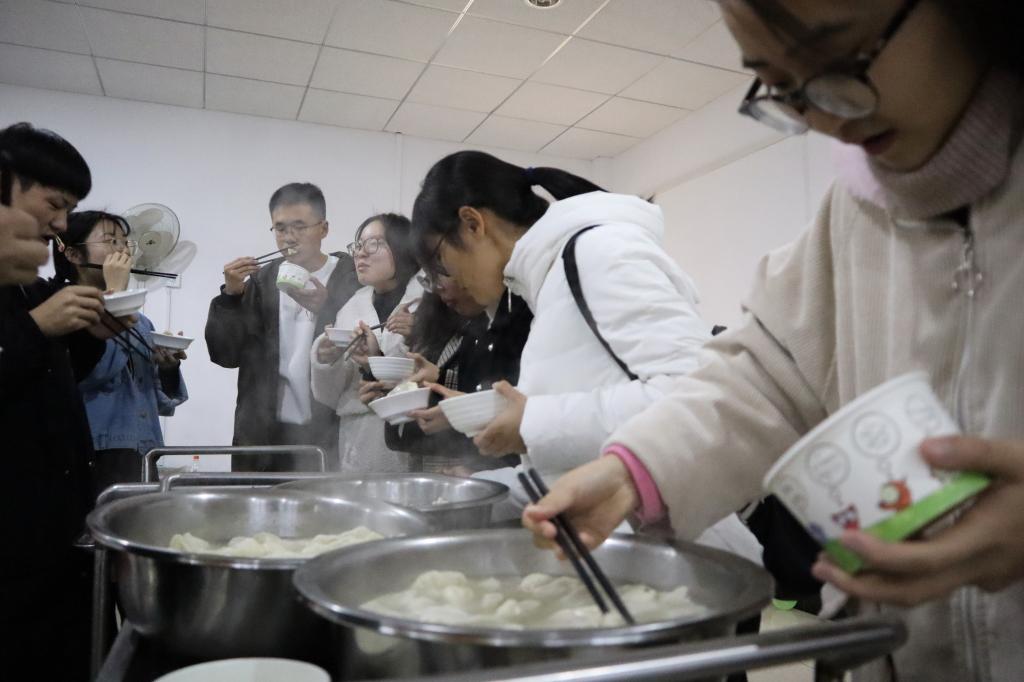 “风里、雨里,一直默默守护在原地,原来你是我最想留住的幸运……”一首《小幸运》在问津苑二楼唱响。12月15日下午,公司党委副书记、2019级楚才交叉复合班班主任宋韧带着糖果和酸奶,来到楚才交叉复合班饺子宴,和员工们一起包饺子,分享冬日里的温暖。