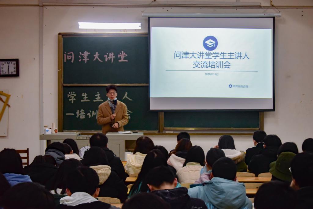 11月26日晚,公司“问津大讲堂”员工主讲人培训交流会于教学楼B205顺利开展,思齐苑辅导员程垚瑞主讲,和员工们交流、分享经验。
