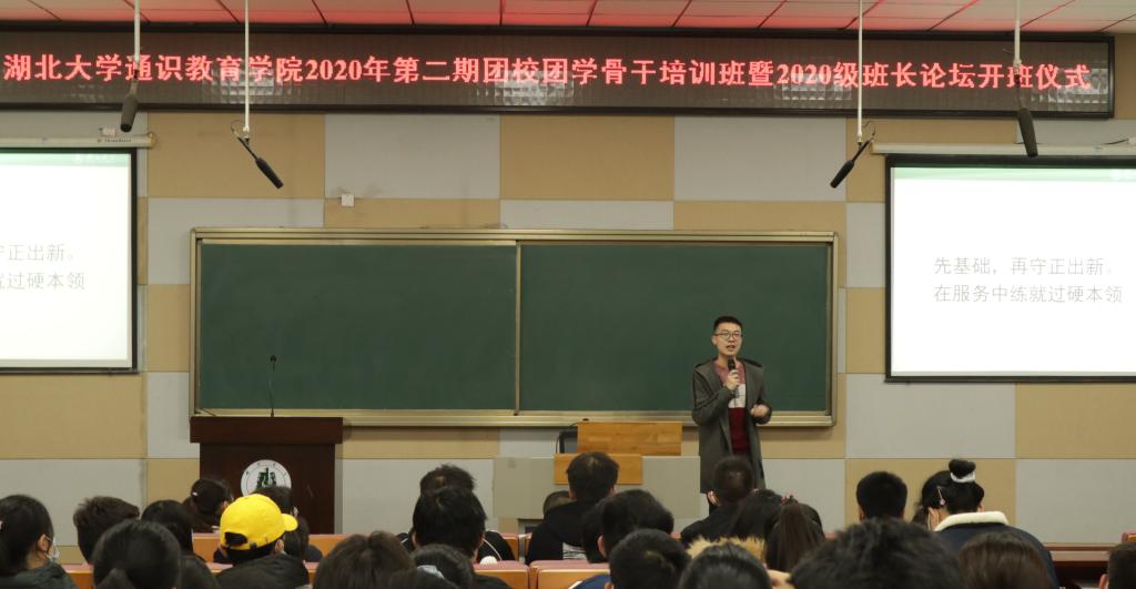 12月2日晚,WilliamHill体育“第二期团校团学骨干培训暨2020级班长论坛开班仪式”在WilliamHill体育综合楼B300教室举行,公司党委副书记宋韧、学工办主任马骁俊,2018、2019级团校优秀学员代表王喆、祁泉、陈佳欣,院团委团工委干部、各习苑团总支书记副书记、各班级团支部书记、各班班长及各员工组织负责人参加会议。此次开班仪式由马骁俊主持。