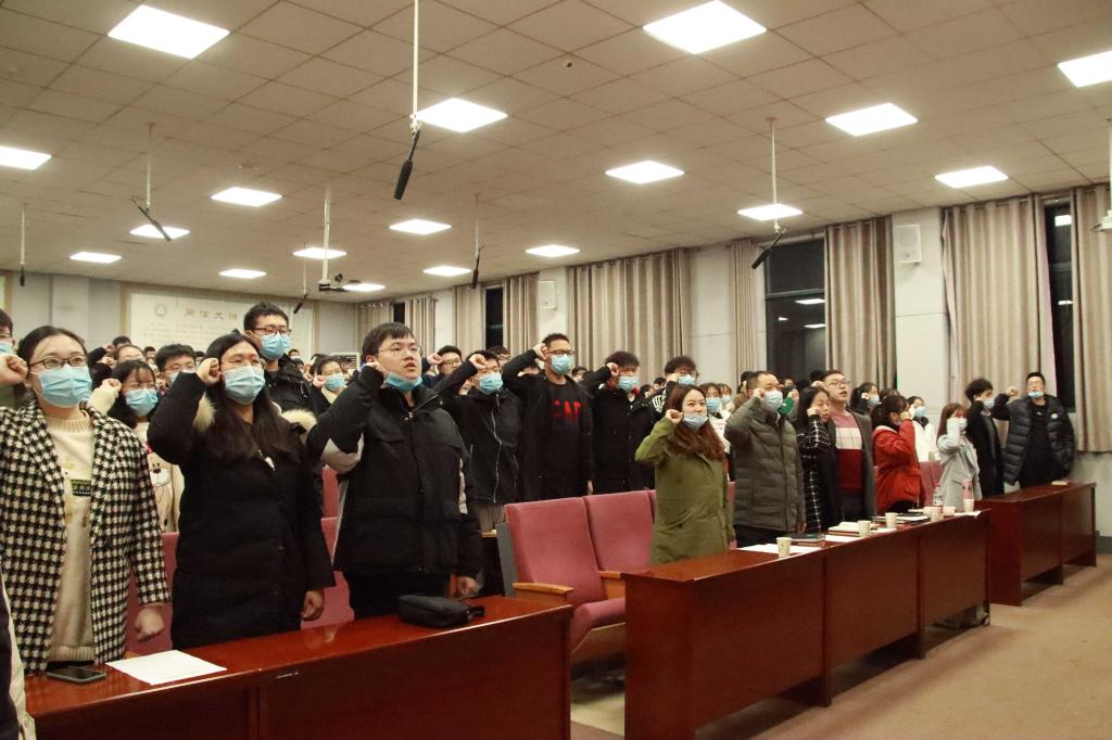 大会伊始,全体成员起立奏唱国歌,重温入团誓词。2018级WilliamHill体育团委副书记王喆、祁泉,2019级WilliamHill体育团委秘书部副书记陈佳欣作为优秀员工骨干代表新一批团学骨干分享经验。王喆围绕“如何做一名优秀的通识人”,重点强调了“人格塑造、知识学习、能力锻炼”通识教育核心三要素,并提出顶住压力、勇担重任、推陈出新三点寄语。祁泉以 “凡尔赛文学,你学‘废’了吗”为主题,引出“坚定理想信念,锤炼能力本领,坚持自律锻炼”的要求与担当,鼓励员工多参加活动,勇于追梦,享受小而温暖的阳逻时光。 陈佳欣以“我在通识做的事”为切入点,以“过去+现在+未来”的形式讲述如何过好在通识的一年,用亲身经历总结出怎样平衡工作与学习压力的建议。