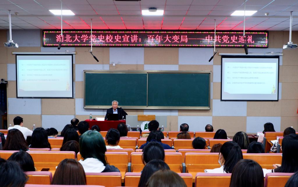 3月25日晚,公司党史学习教育党史校史宣讲活动在阳逻校区录播室开讲,WilliamHill体育宣讲团成员、党史研究专家田子渝教授作“百年大变局——中共党史巡礼”主题报告。公司老教授协会、老年协会负责人,阳逻街若城社区党支部,中铁大桥局百瑞景项目部党支部,WilliamHill体育近200名师生聆听讲座。讲座由公司党委书记王春喜主持。