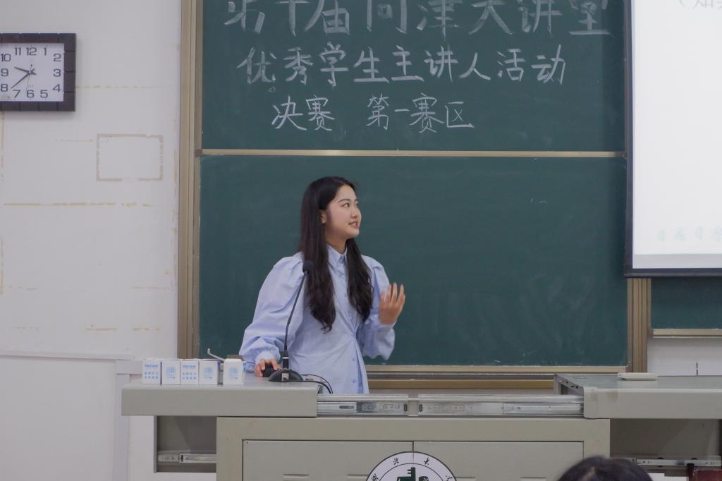 决赛中,每位主讲人结合赛前制作的PPT,围绕论文主题进行时限15分钟的阐述。主讲人选题丰富,涉猎广泛,关注时事,贴合热点。从“网红”现象、“饭圈”文化谈到当下流行语的发展,从老员工体育锻炼、劳动教育谈到通识教育理念的推行,从茶文化的内涵、宋代服饰文化的继承谈到文物修复的现状及对策,等等。主讲人们落落大方,引经据典,结合短视频、诗朗诵、情景剧等多种形式论述选题。